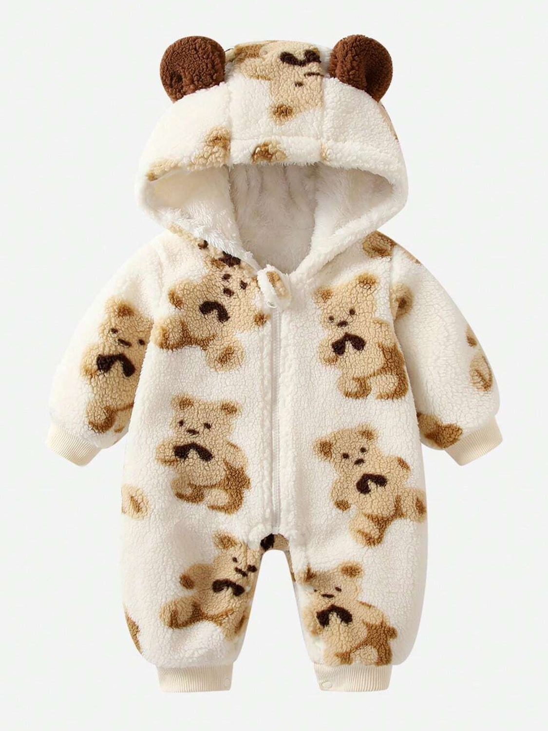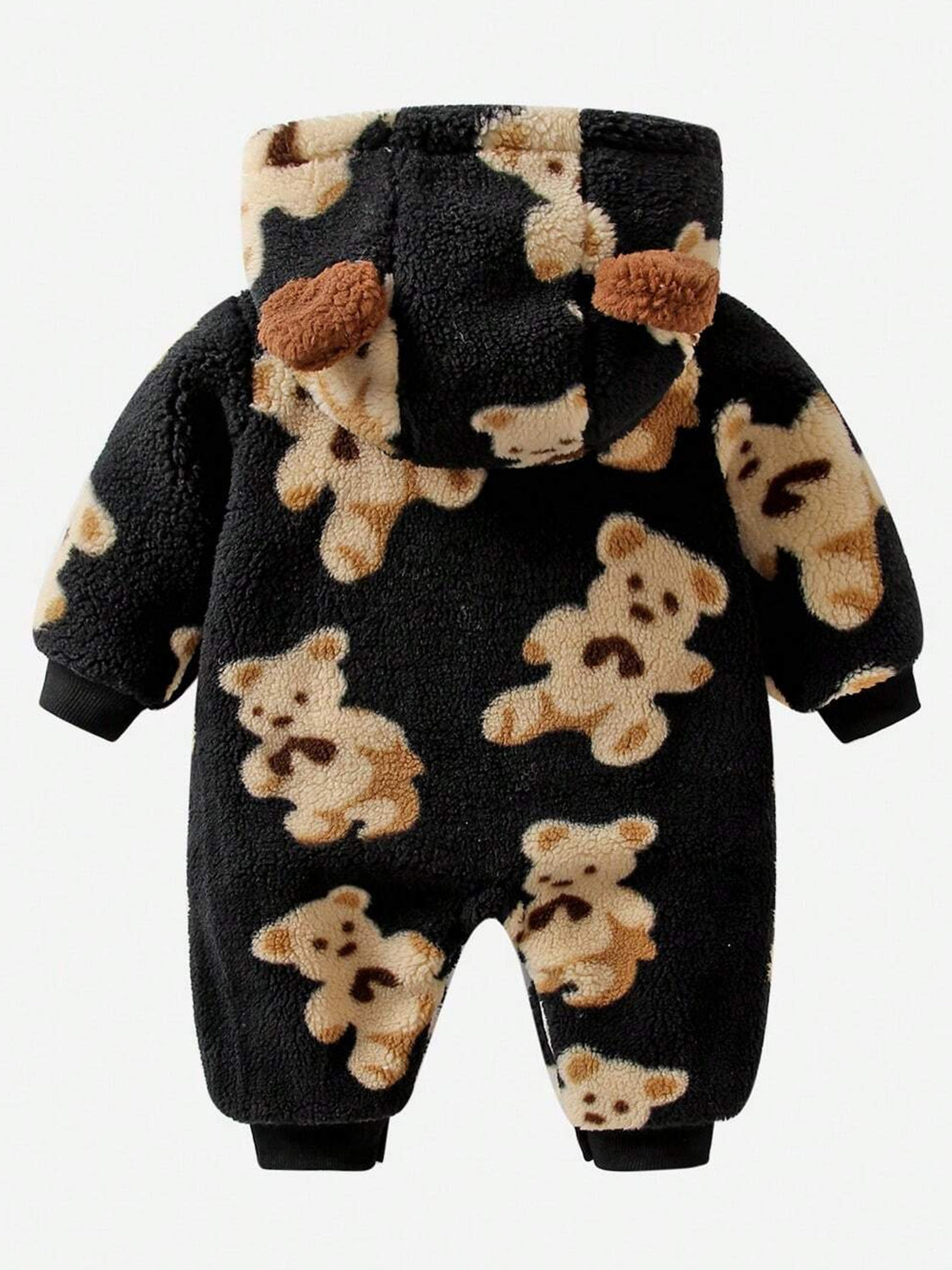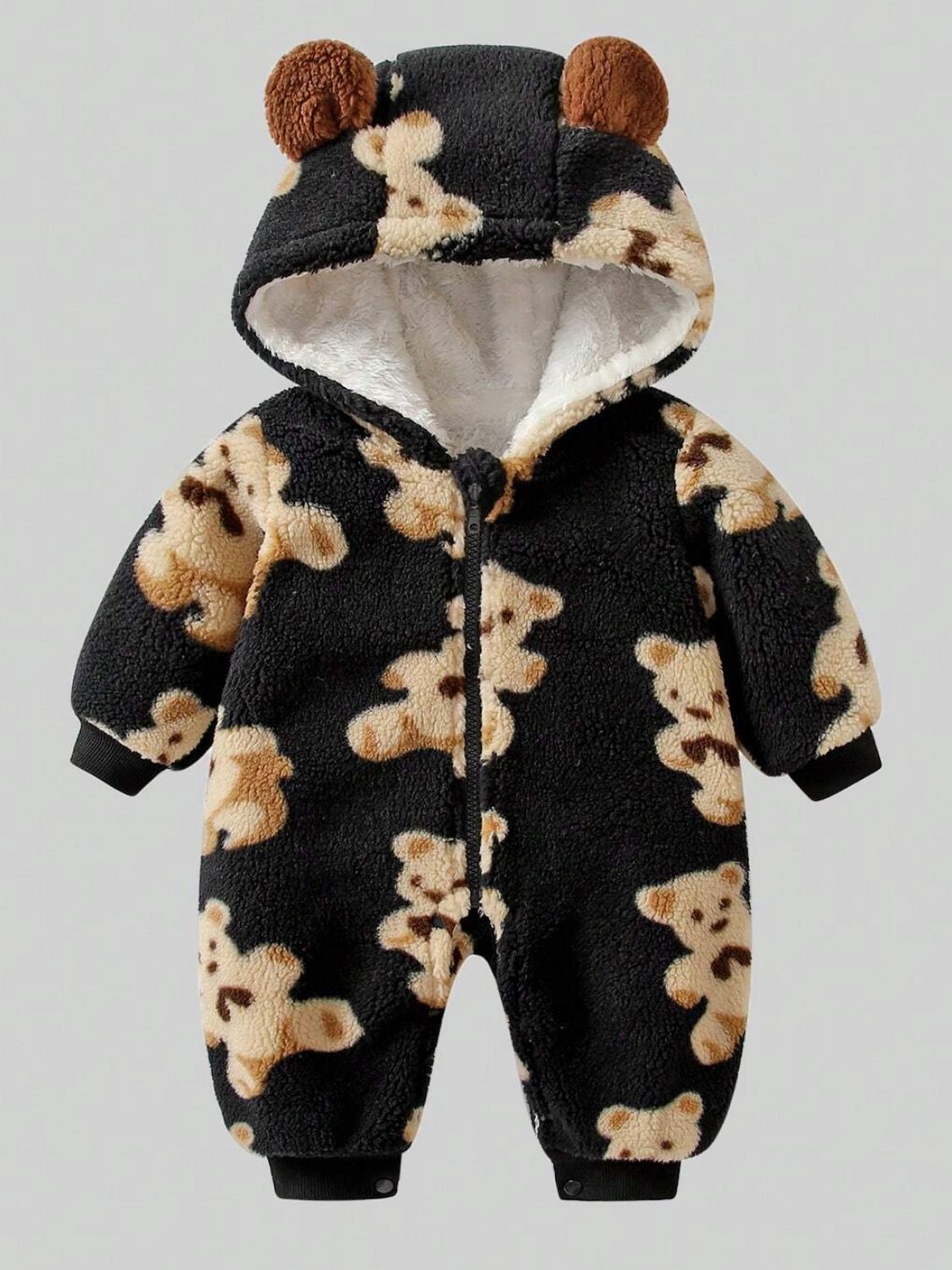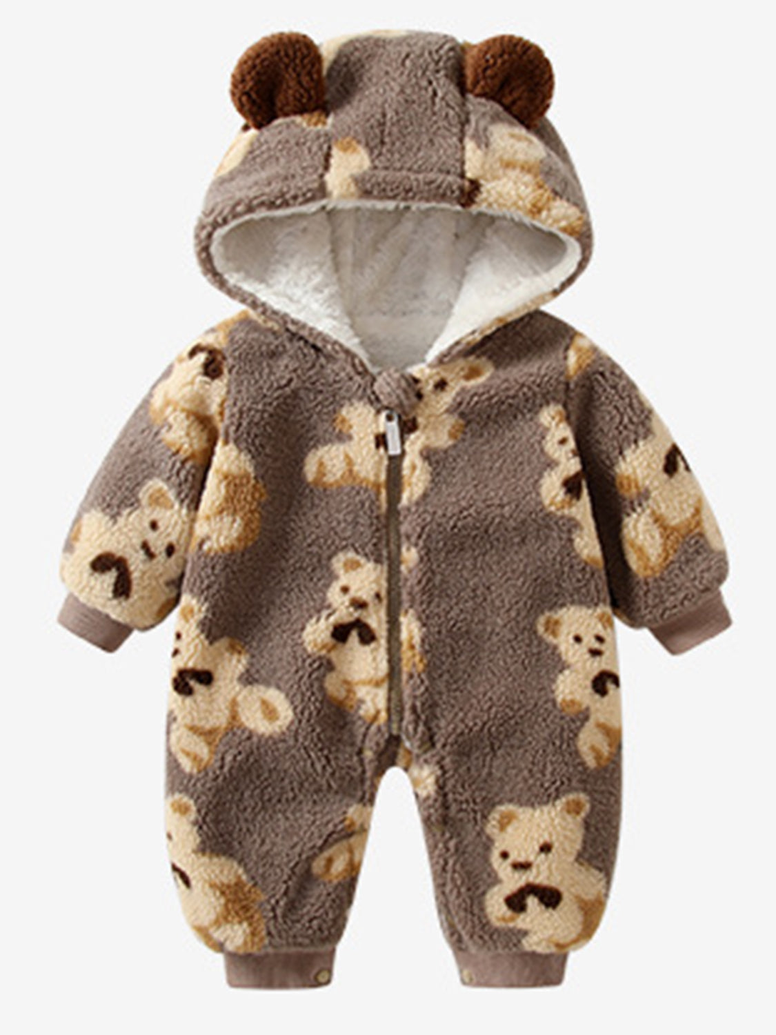 Bear Zip Up Long Sleeve Hooded Jumpsuit