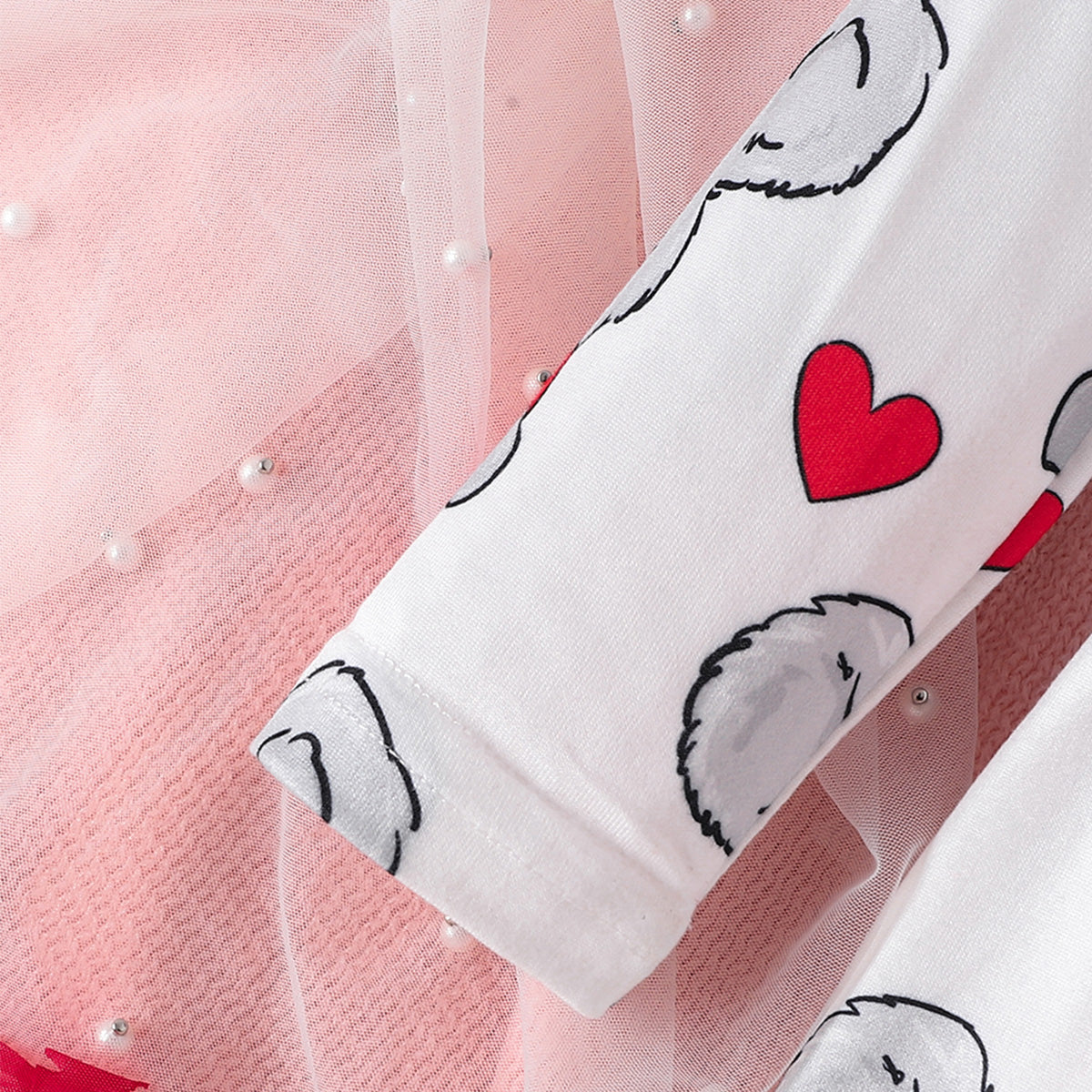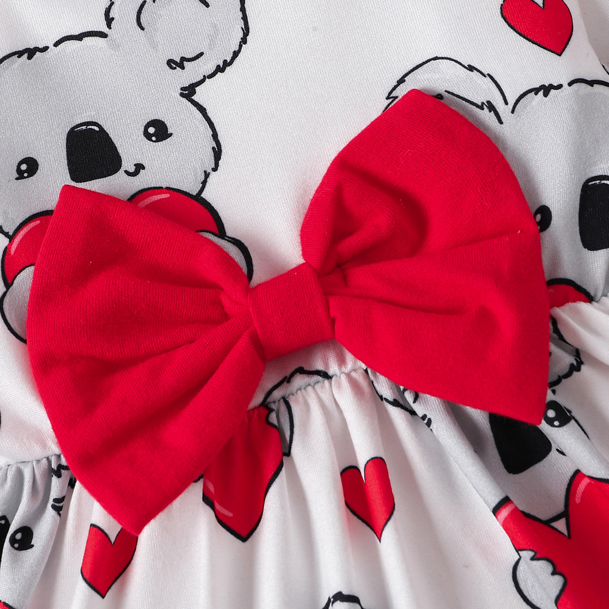 Bow Ruffled Koala Print Long Sleeve Dress