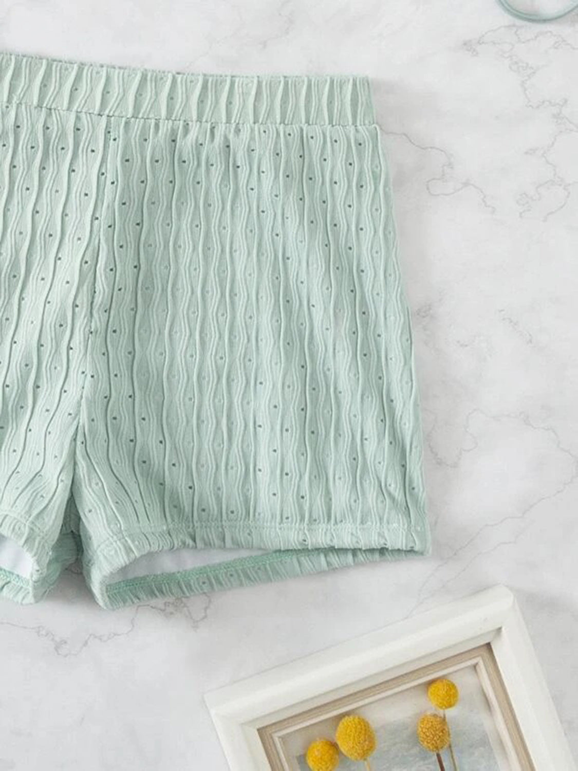 Eyelet Halter Neck Bra and Bottom Swim Set