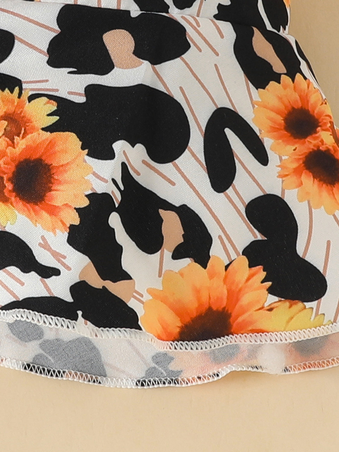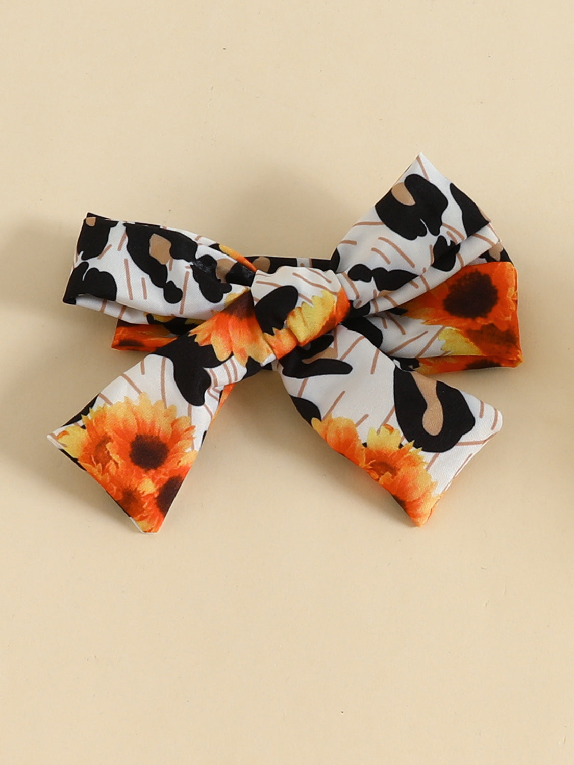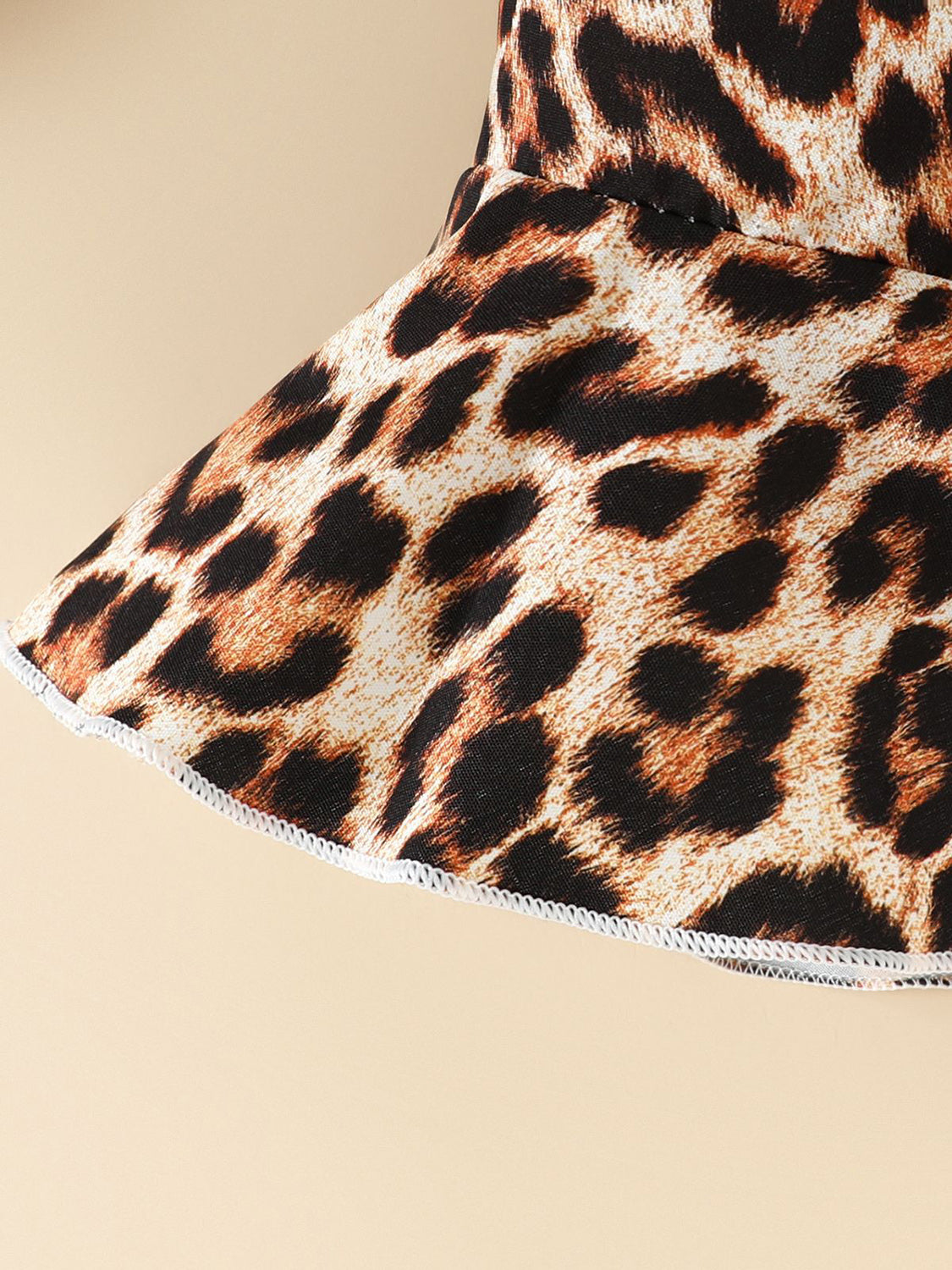 Letter Graphic Long Sleeve Bodysuit and Bow Leopard Pants Set