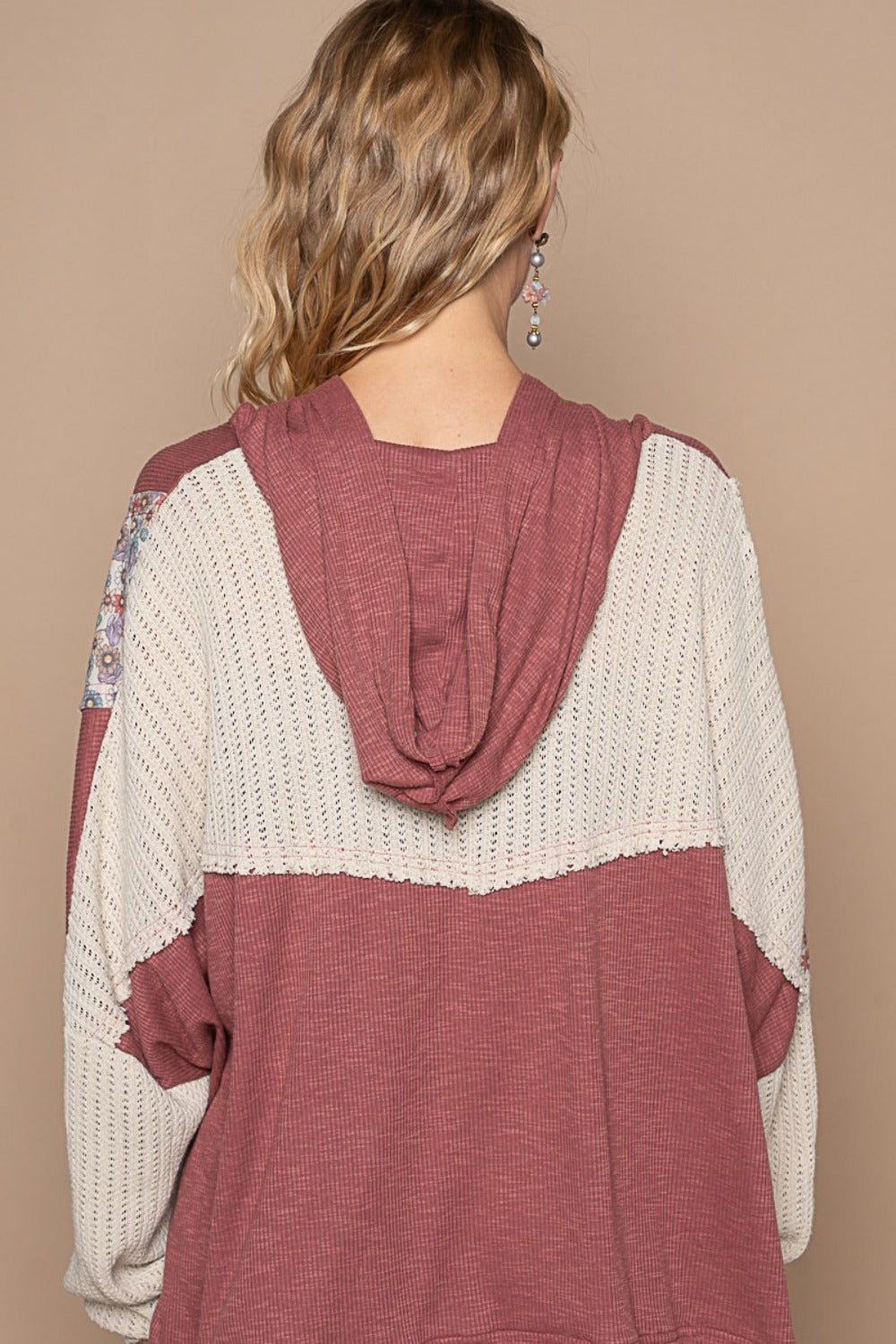 POL Long Sleeve Floral Peace Patch Ribbed Hoodie