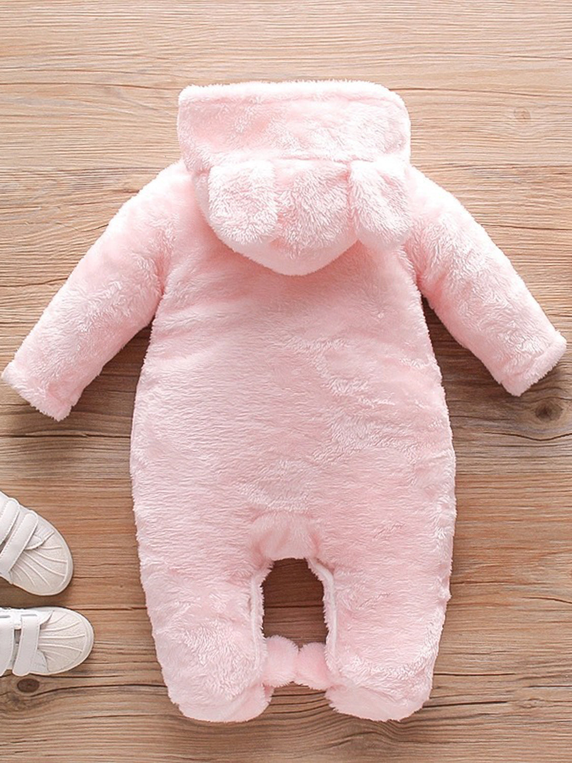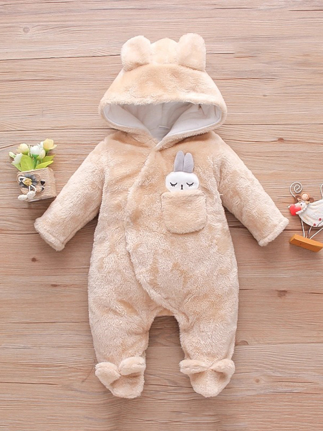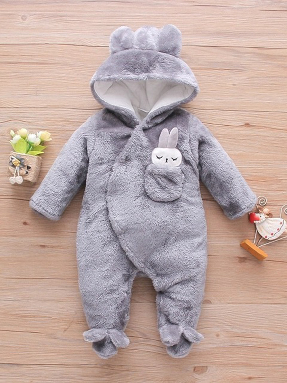 Rabbit Decor Long Sleeve Hooded Snapped Jumpsuit
