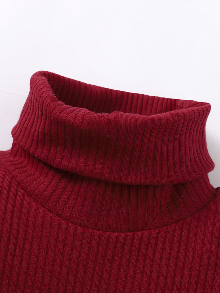 Turtle Neck Long Sleeve Ribbed Top and Plaid Skirt Set